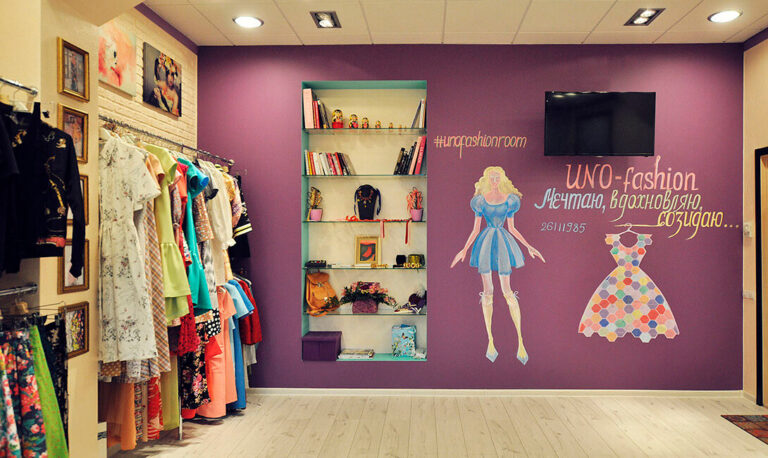 Фиолетовая грифельная стена стала частью фирменной атмосферы Uno Fashion: она помогает команде создавать визуальные сценарии, презентовать коллекции и оформлять пространство под разные события.