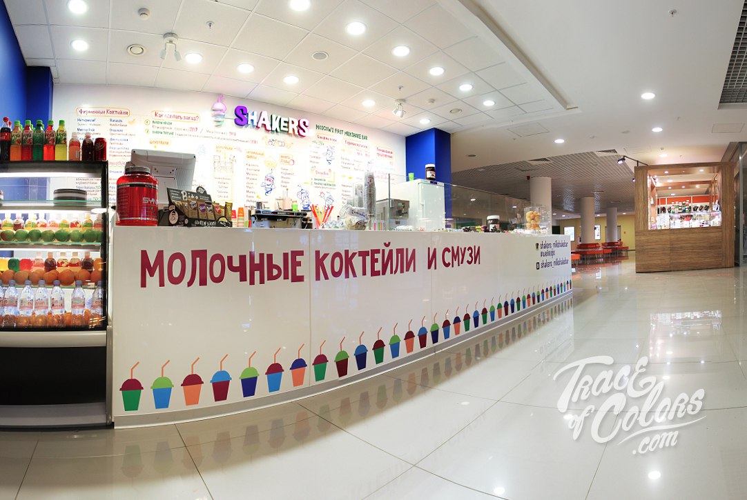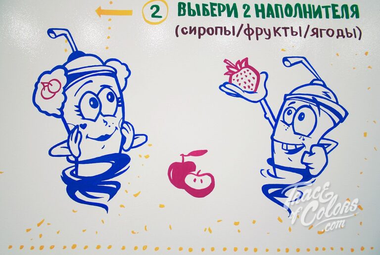 В кафе Trace of Colors мы нанесли белое маркерное покрытие на одну из стен, превратив её в интерактивную поверхность для гостей и сотрудников.