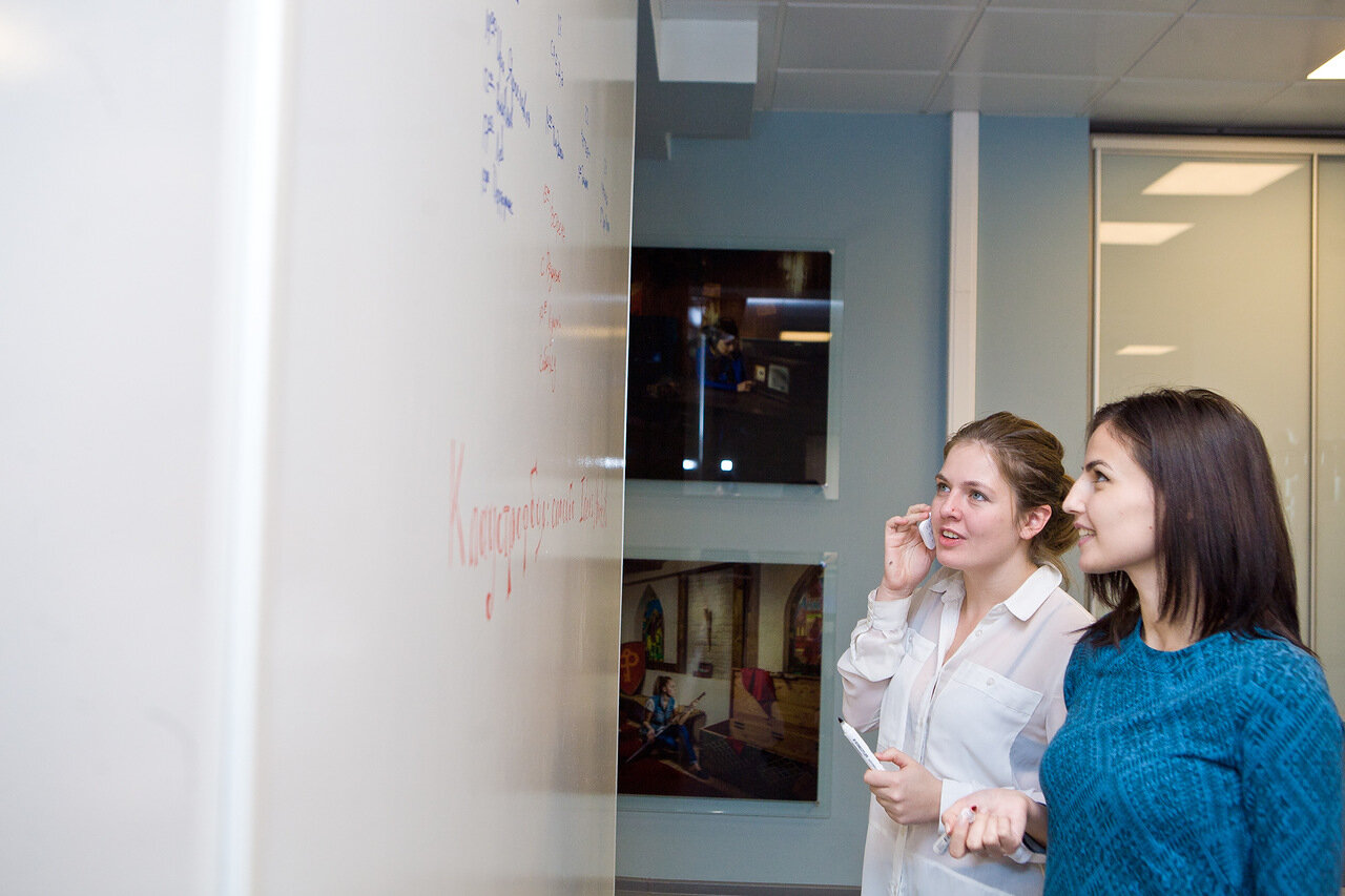 Сотрудники могут фиксировать идеи, планировать квесты и визуализировать задачи прямо на стене.