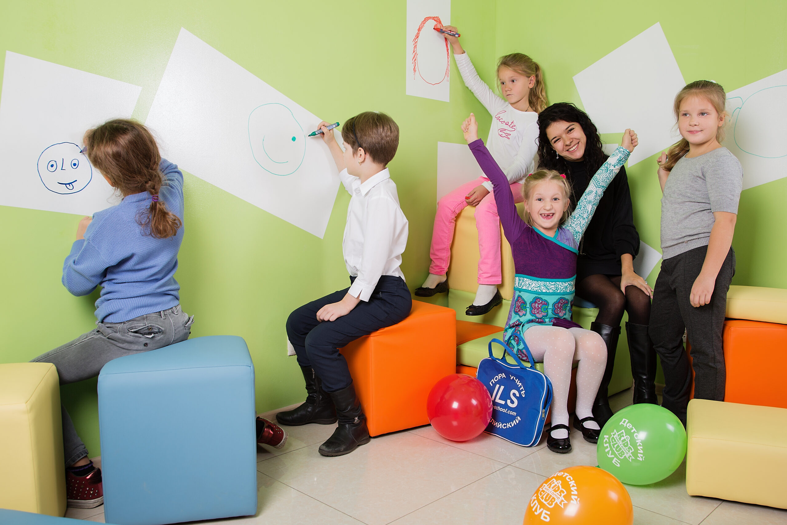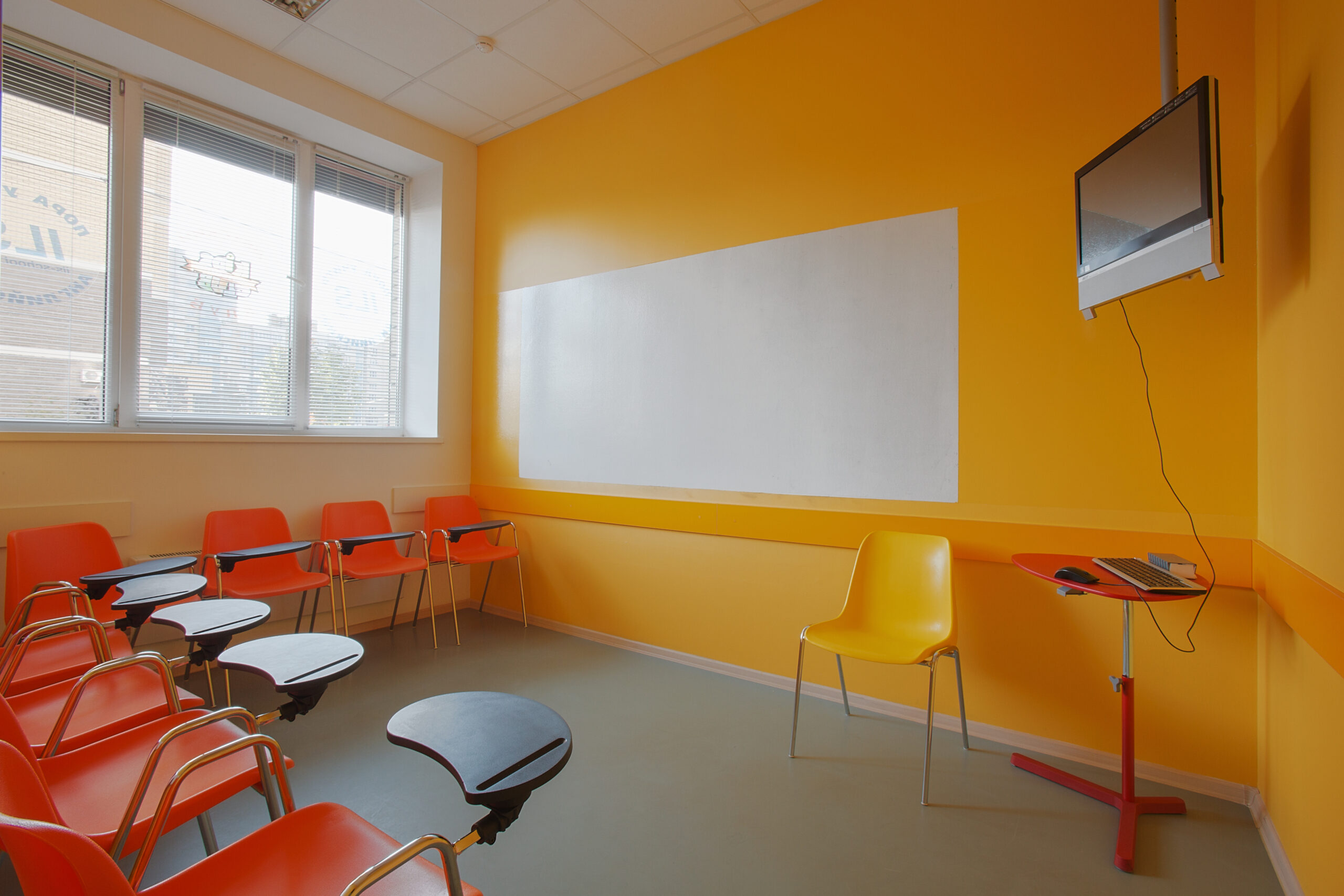 В языковой школе ILS в Одинцово мы обработали маркерным прозрачным покрытием Siberia несколько стен в разных классах. База осталась цветной — как задумано в дизайне школы. Теперь ученики и преподаватели пишут прямо на стене: новые слова, фразы, схемы, игры, задания.