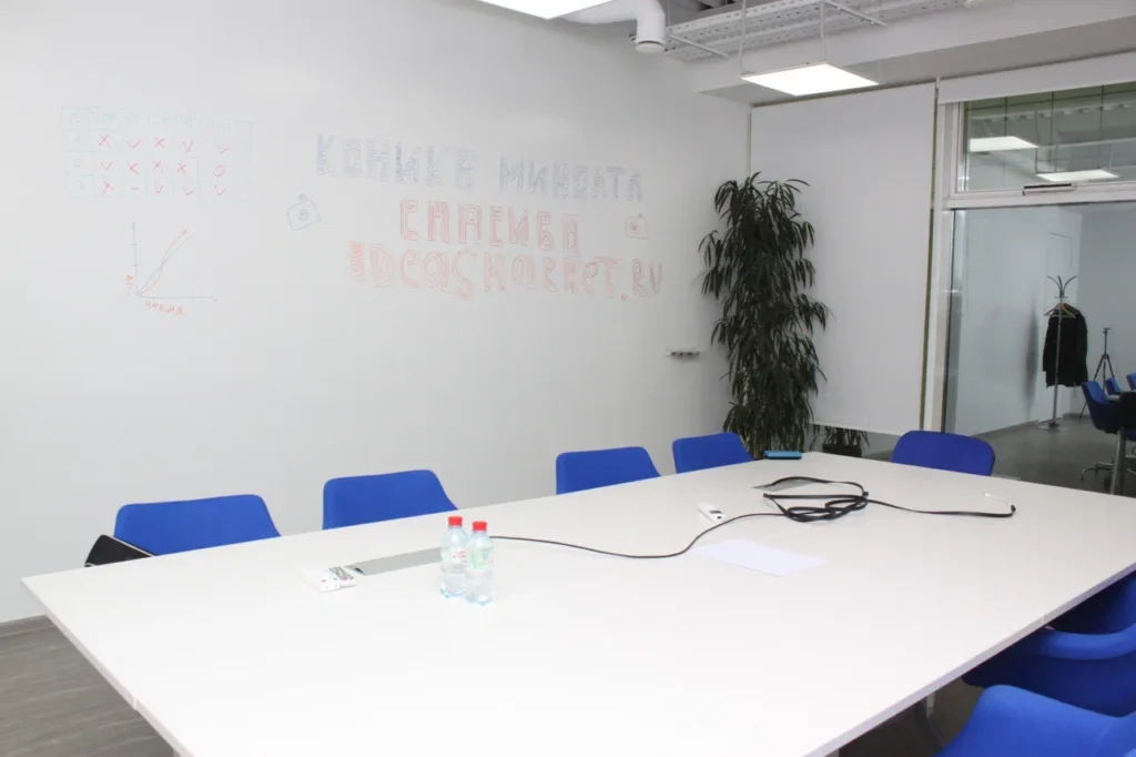 Вид Большой Маркерное покрытие Офис Переговорные Маркерная белая стена в переговорной офиса «Первый Бит»