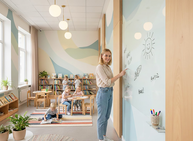 Простая установка: снимите защитный слой, приложите пленку к подготовленной поверхности и разгладьте сухой тряпкой — никаких пузырей и лишних усилий. Теперь любая поверхность — инструмент для творчества, планирования, обучения и визуализации идей.