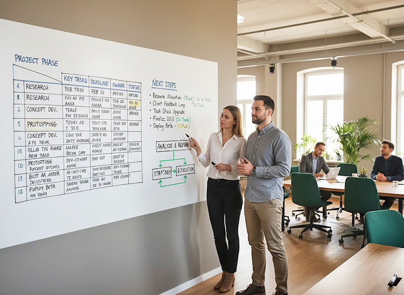 Используйте пленку для интерактивных досок и презентаций с проектором — поверхность не бликует, а маркер легко стирается.