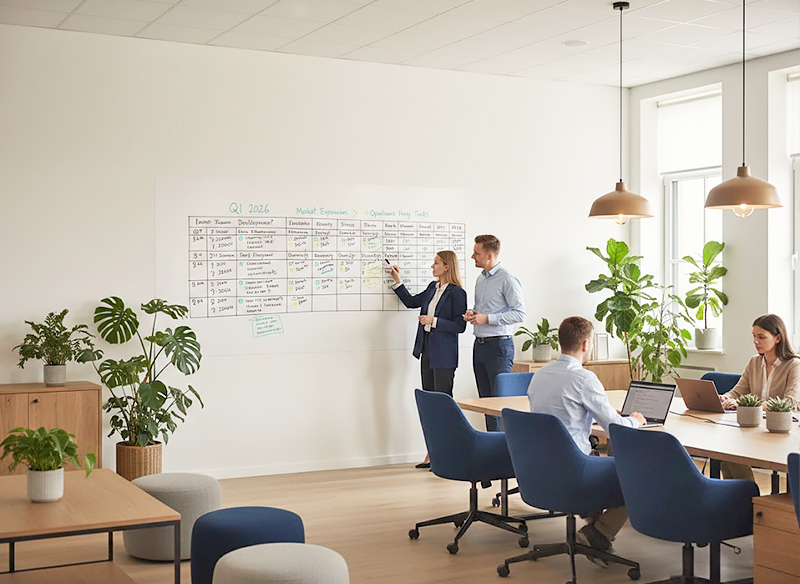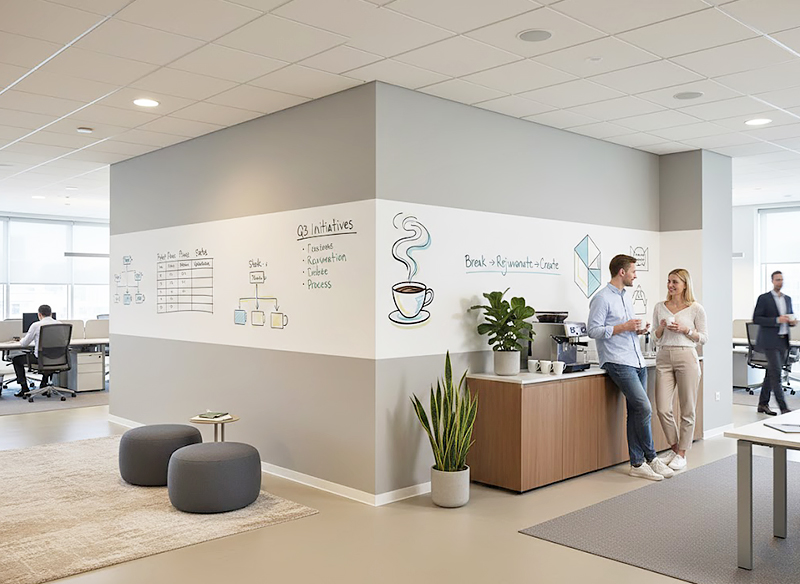 Матовая маркерная пленка позволяет организовать зоны для заметок, планирования и творчества, превращая стены и мебель в удобные рабочие поверхности.